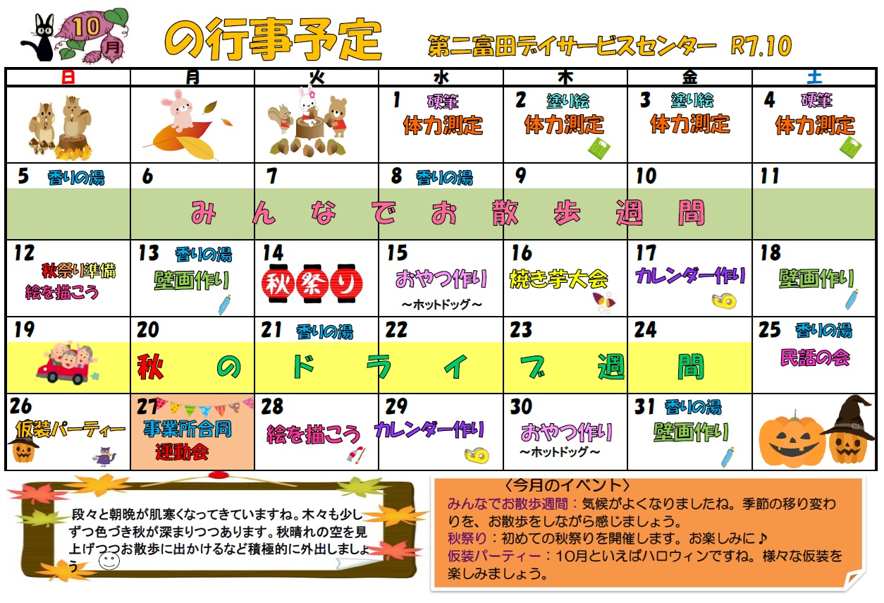 第二富田デイ 10月行事予定