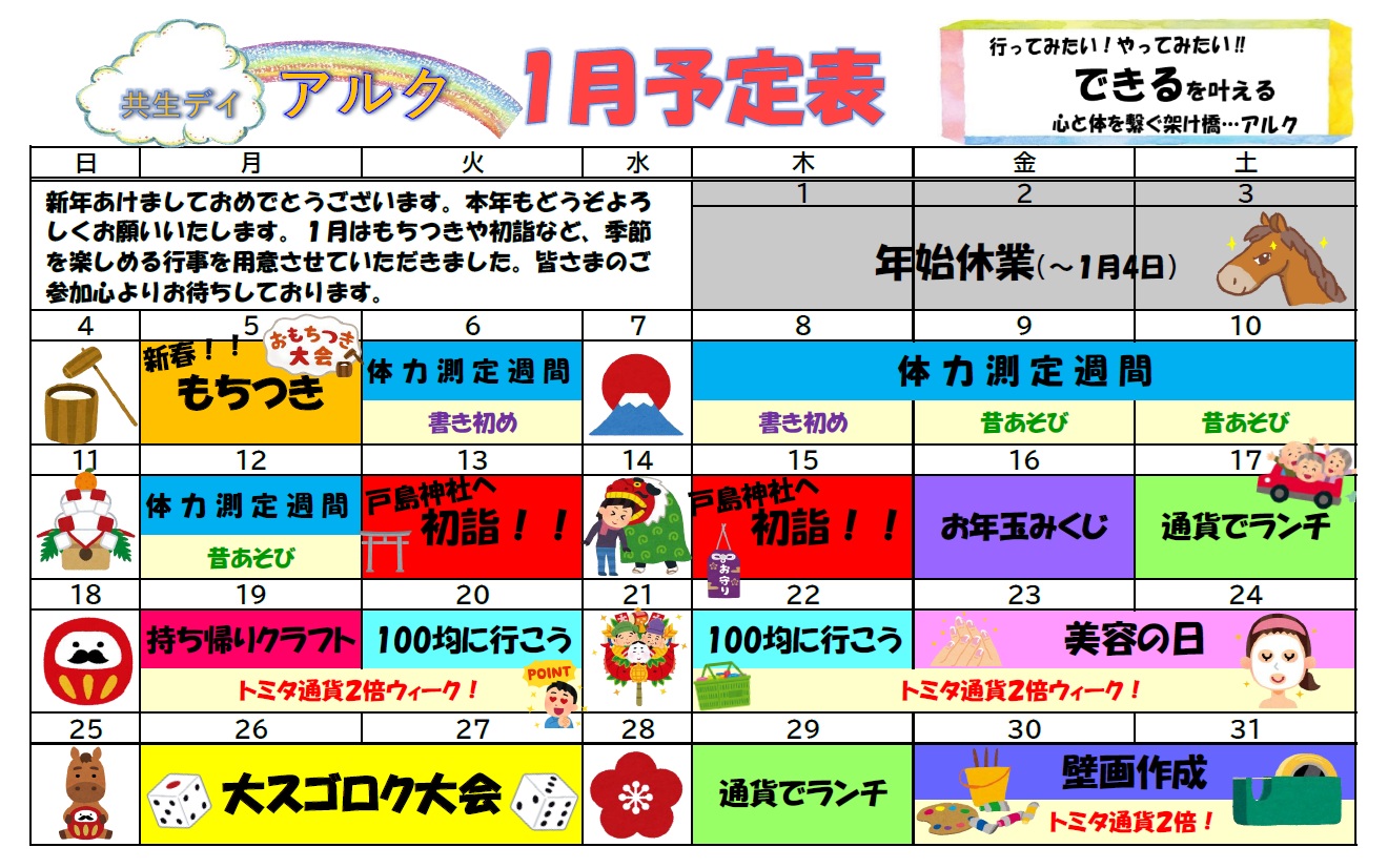 共生デイアルク 1月行事予定